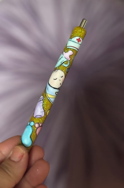 Smooth gel pens, covered in glitter resin and cute designs. So comfortable...