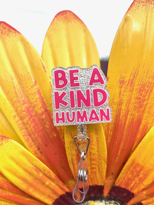 "Be a Kind Human" Badge Reel with Alligator clip