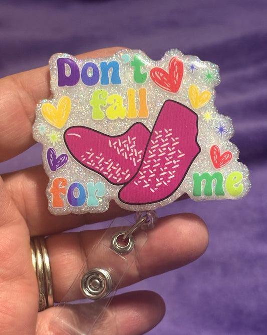 "Don't Fall for Me" Badge Reel with Alligator Clip