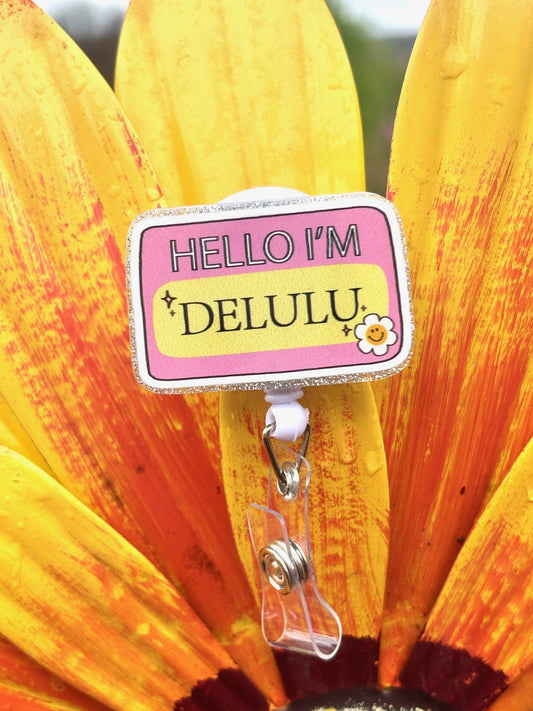"Hello, I'm Delulu" Badge Reel with Alligator clip