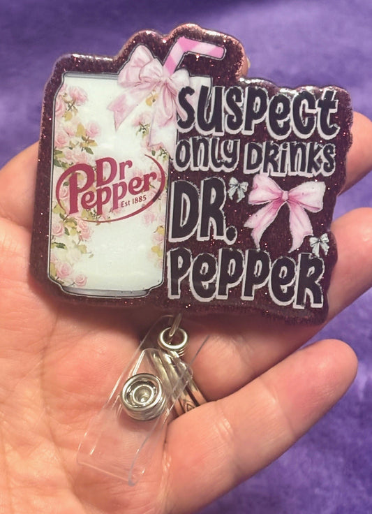 "Suspect Only Drink Dr. Pepper" Badge Reel with Alligator Clip