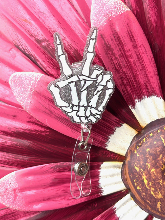 Silver Peace Sign Badge Reel with Alligator clip